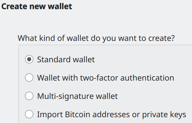 Create standard wallet. Other types are advanced and out of scope of this tutorial.