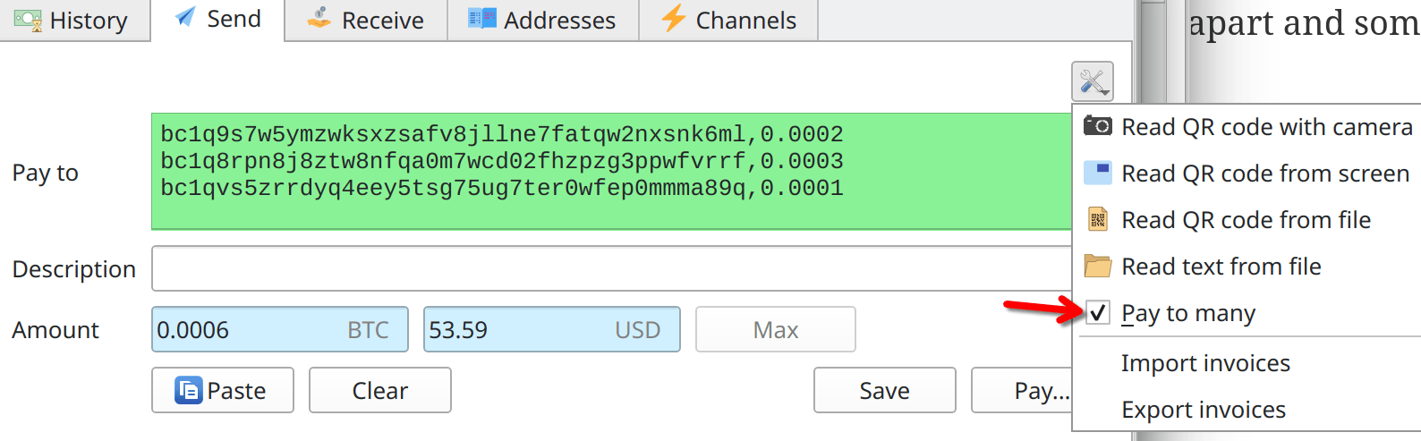 address,amount in Pay To field, each on each