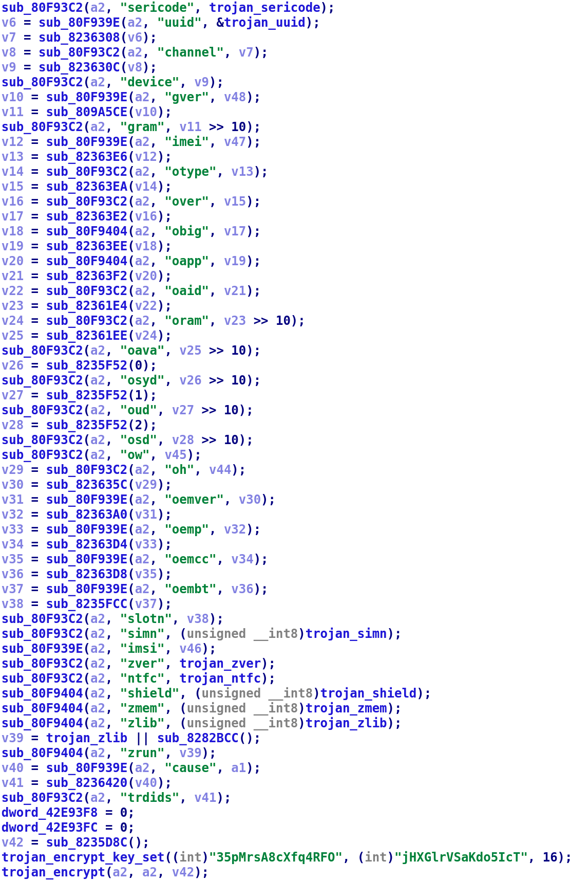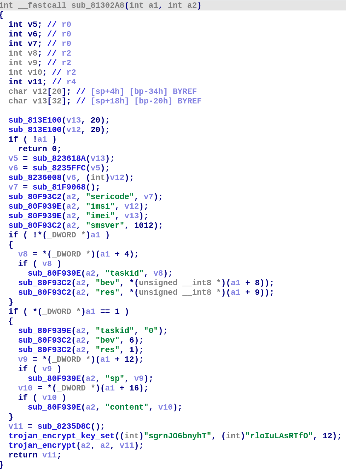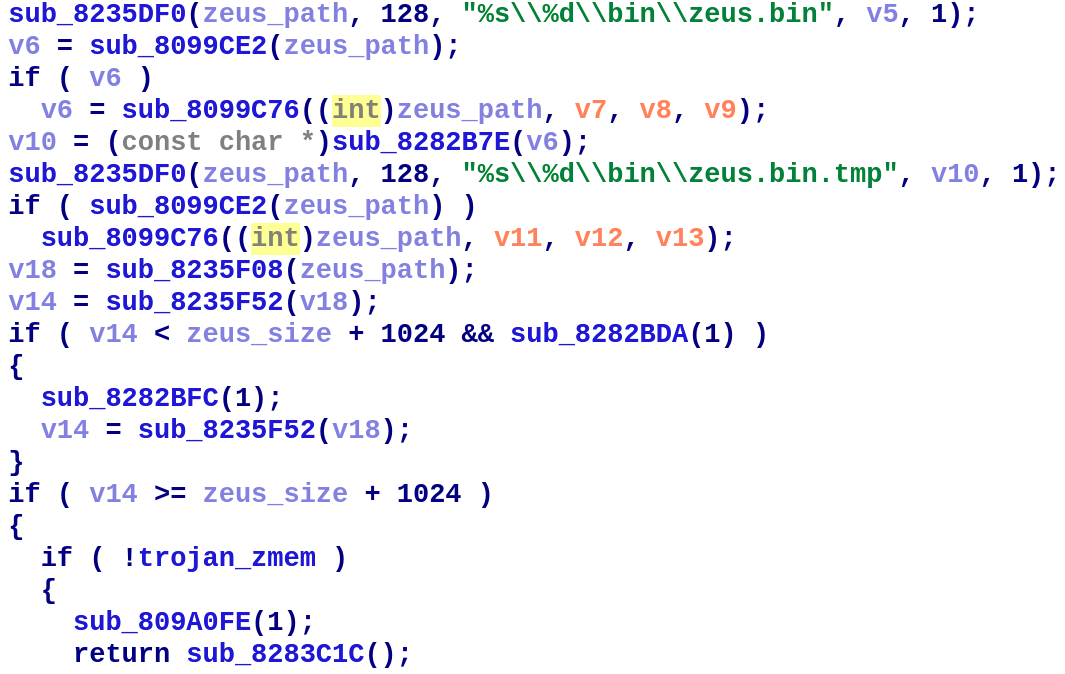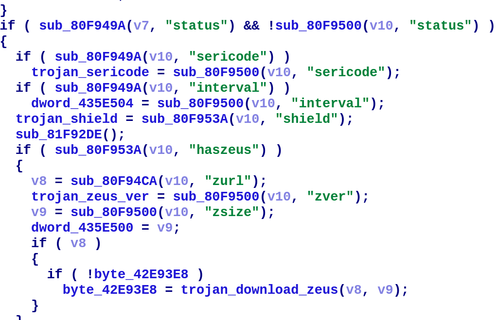 Функция “zeus” скачивает программный код с сервера в виде файла, сохраняет его во внутреннюю скрытую память телефона и выполняет при следующем включении. Таким образом реализуется система плагинов — дополнительной функциональности трояна, позволяющей реализовать любые сценарии извлечения «пост-продажной прибыли».